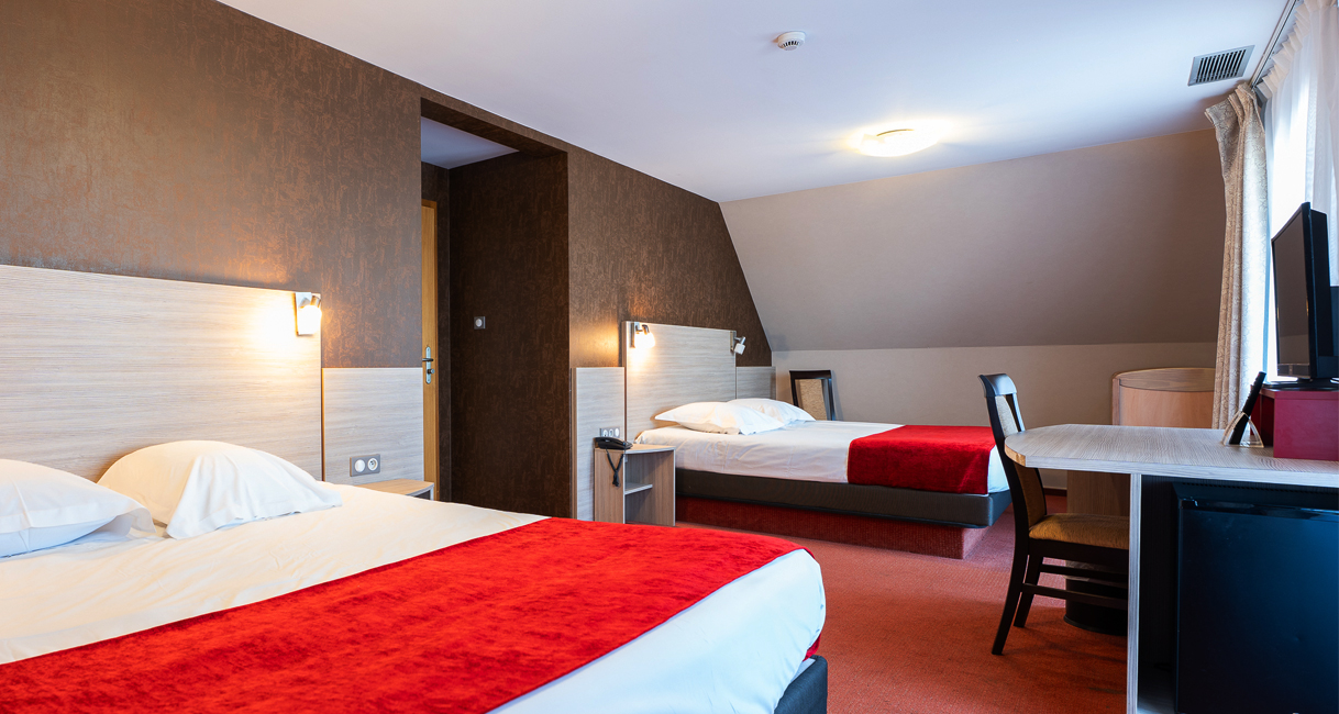 Exemple de Suite Familiale tout confort pour 5 ou 6 personnes avec 2 lits doubles 1,60 m + 1 lit double de 140 cm.